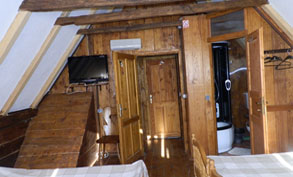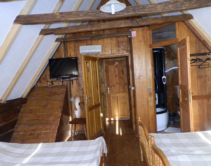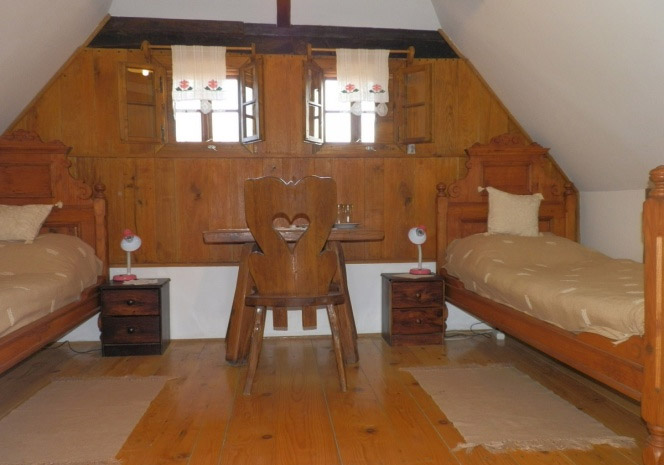 U sklopu tradicionalne drvene kuce smjestene su dvije dvokrevetne sobe. Uredene su na tradicionalan nacin u kojima se nalaze stari originalni kreveti koji su stari preko 150 godina.